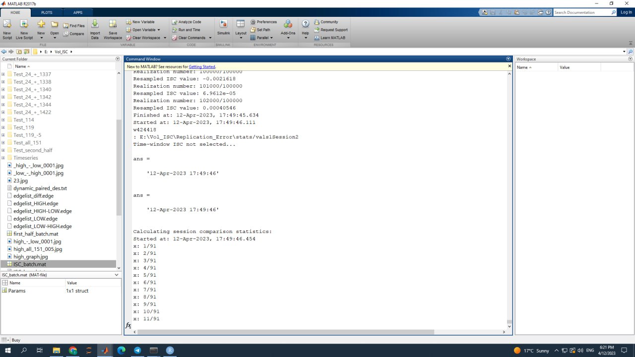 The thing is that the first and second halfs of my dataset taken separately work fine, but adding subjects from one half to another results in this (screenshot attached). I can't find any systematic shifts in my data judging by the headers. Also, basic ISC for the whole dataset works fine (although there are some seemingly random NaN values in a few iterations), just not the comparison .